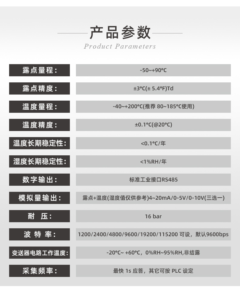 ●露點量程:?-20~+100°C