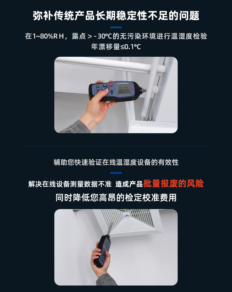 ●長期穩定性:?年漂移量≤0.1°C(在無污染環境進行溫濕度檢驗